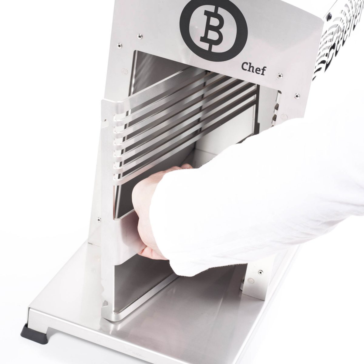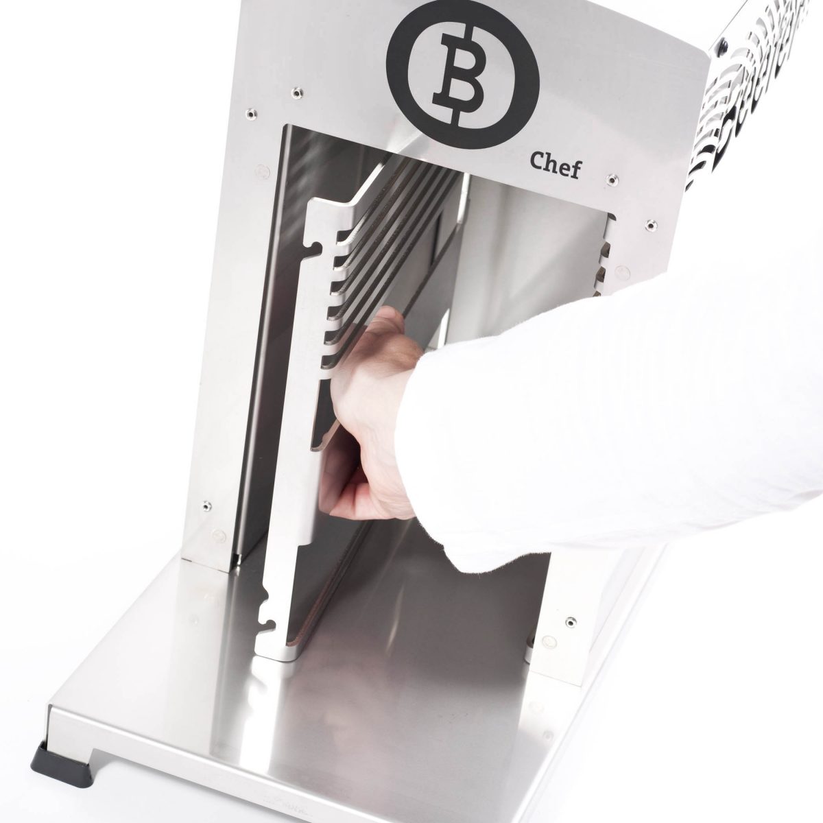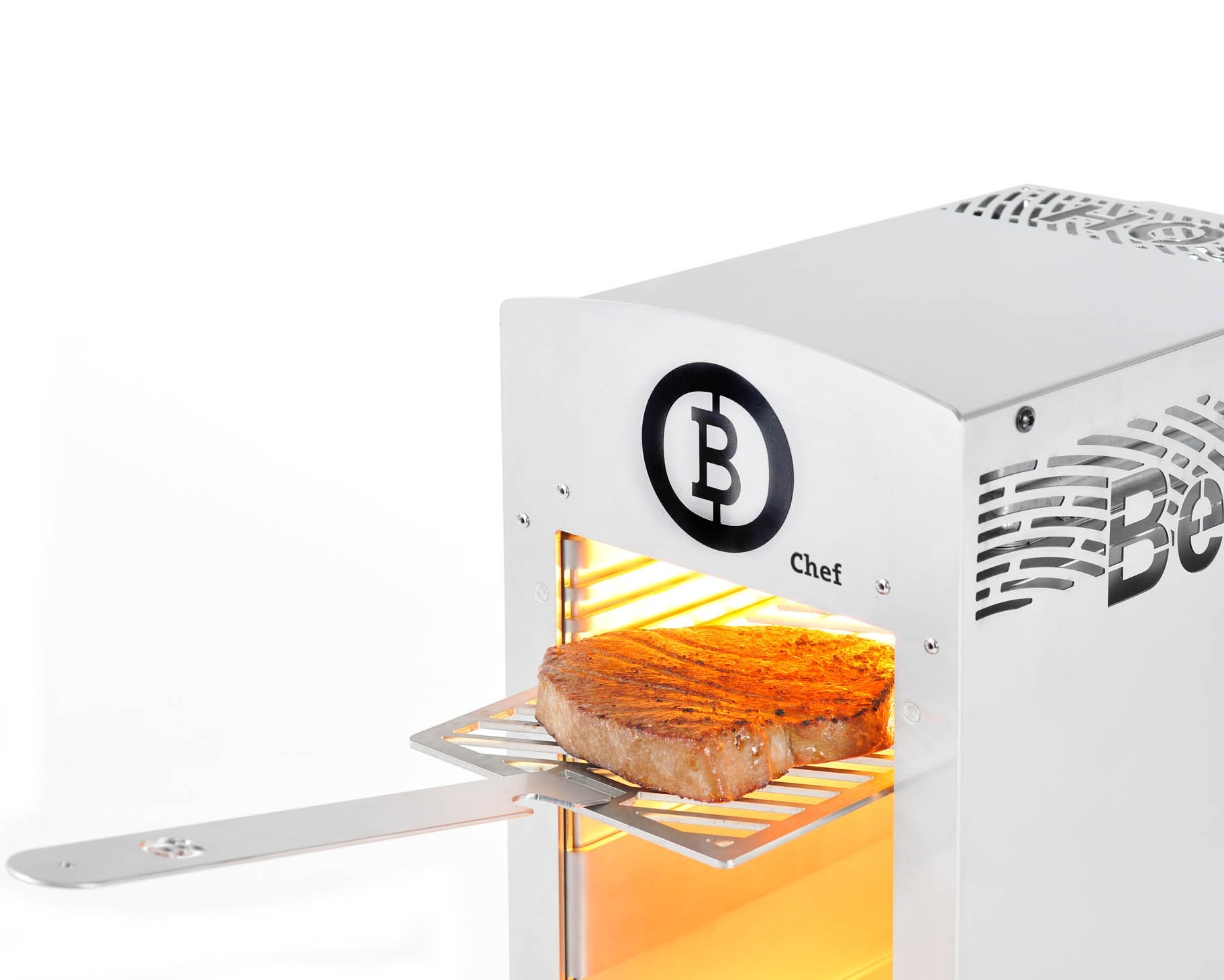Mit dem Beefer® One Chef hält ein neues Modell Einzug in die Profi-küche. Bislang hatte nur der große Beefer® XL-Chef die Zulassung für die Nutzung im Innenbereich und der One Pro war nur für den Ein-satz bei Outdoor-Events oder im Foodtruck zu haben. Mit der kleinen Chef-Version bieten wir nun ein weiteres günstiges Einstiegsmodell ins 800 Grad-Geschäft mit Indoor-Zulassung.