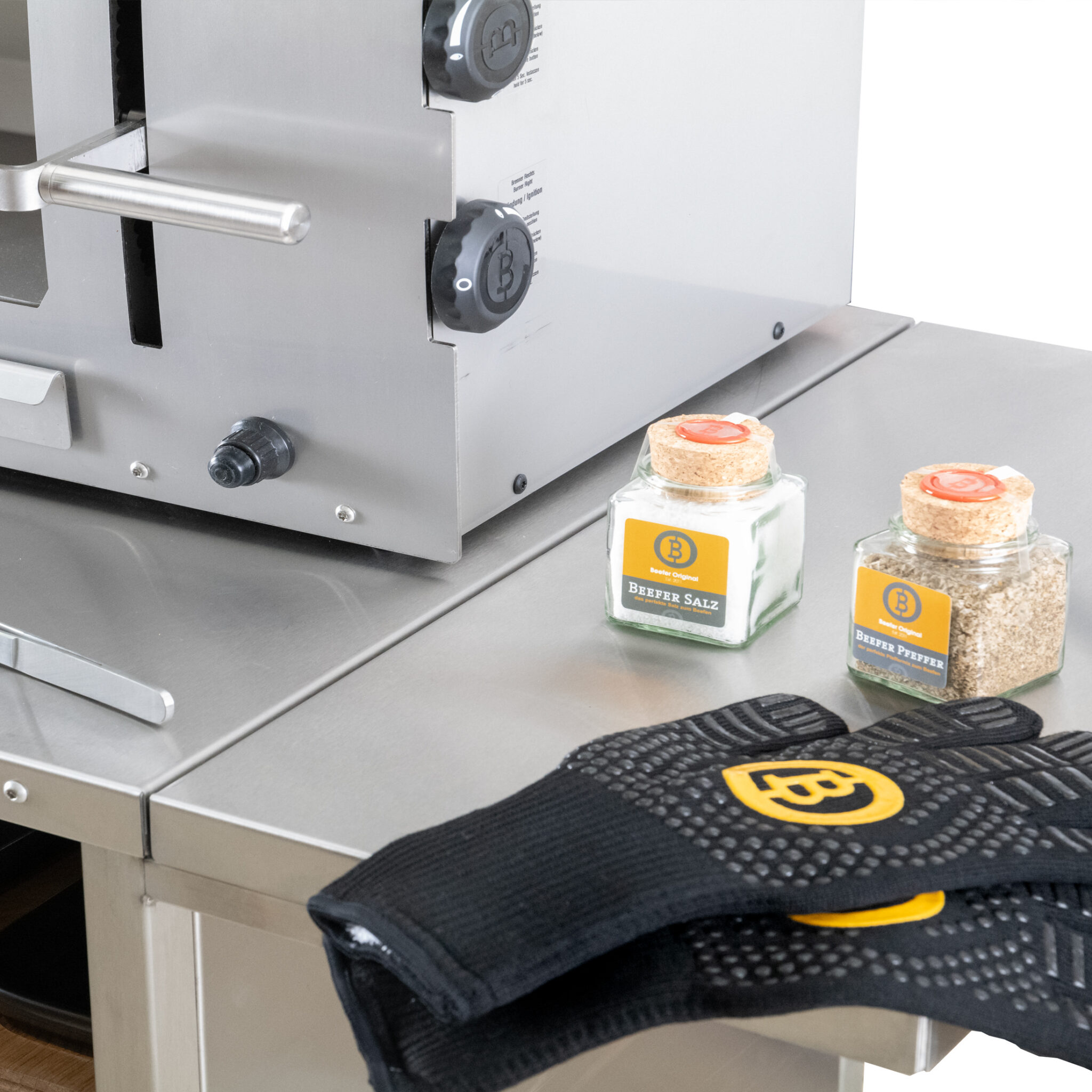 Notre nouveau grand chariot pour Beefer est un modèle entièrement repensé – conçu avec une solidité et une qualité de fabrication qui ne laissent aucune place au compromis. Fabriqué entièrement en acier inoxydable, il est livré avec deux tablettes latérales amovibles qui se fixent sans outils en un clin d’œil. Résultat : une surface de travail généreuse de 1,25 mètre pour accueillir votre Beefer, vos plats, planches et tout ce qu’il faut pour une expérience de cuisson parfaite.