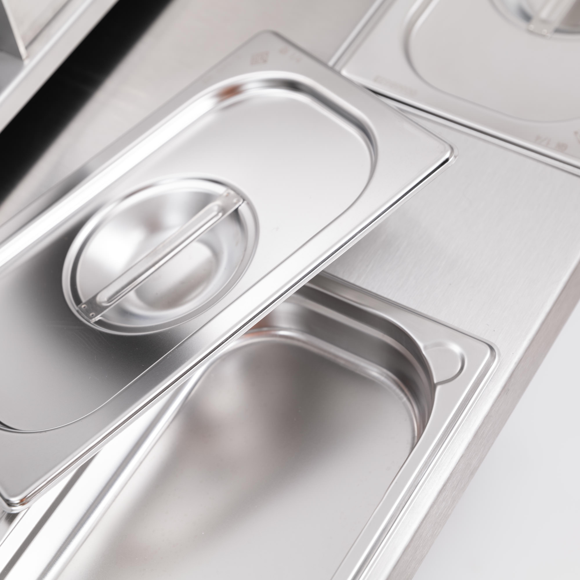 Stevige deksel van hoogwaardig roestvrij staal, geschikt voor GN-bakken in formaat 1/4. Past op de 40 mm diepe variant (verkrijgbaar in onze shop) en ook op diepere uitvoeringen (60 mm en meer). Ideaal voor het veilig en hygiënisch afdekken van ingrediënten.