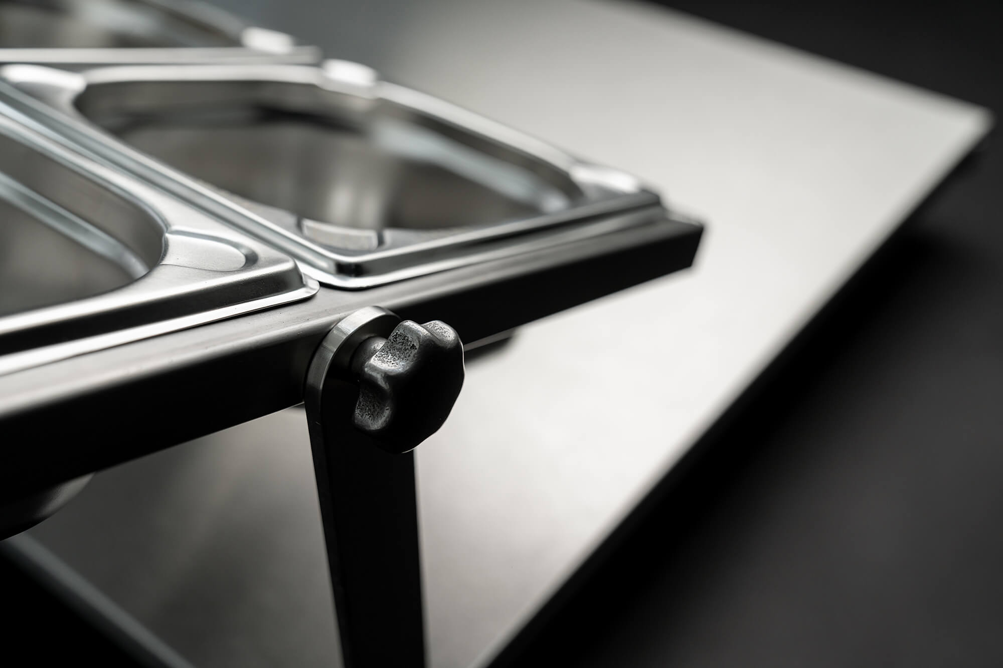 Gedaan met rommelige voorbereidingen: vanaf nu bewaar je al je ingrediënten overzichtelijk in zes diepe GN-bakken (formaat 1/6, hoogte 65 mm) – klaar voor gebruik, eventueel direct uit de koelkast. Het werkblad van roestvrij staal is niet alleen super hygiënisch, maar ook stevig, duurzaam en stijlvol.