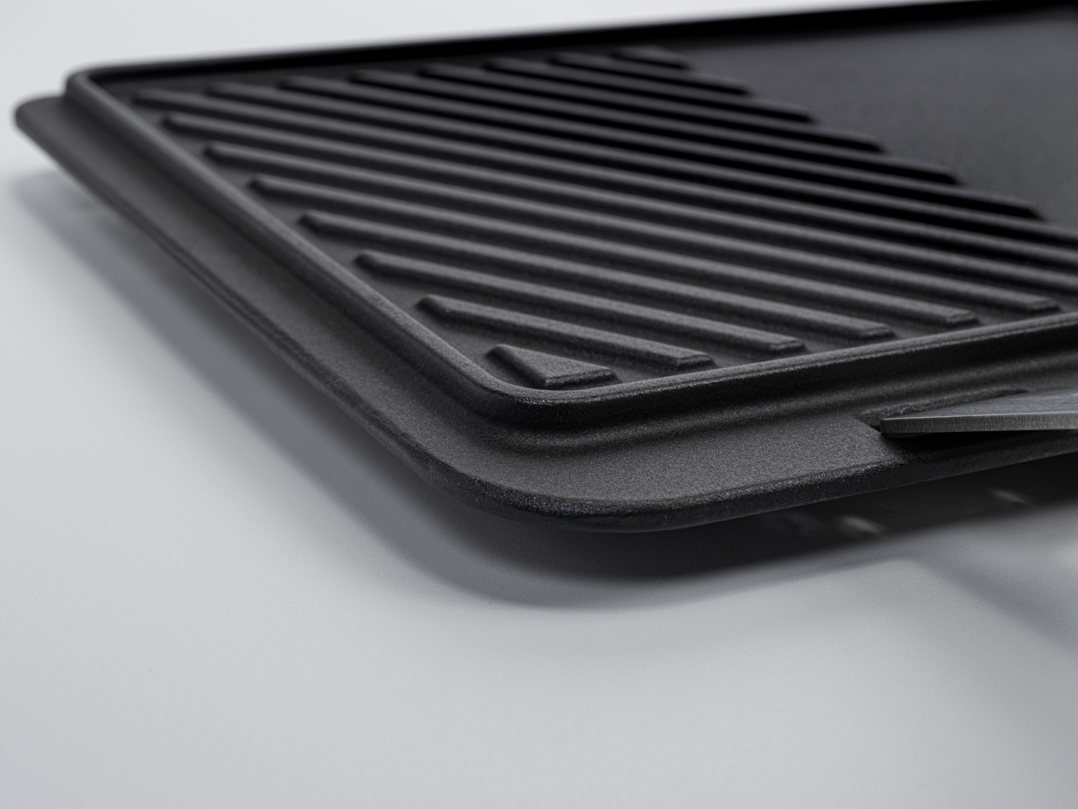 Die robuste Beefer Gusseisen Pfanne XL aus dem System 800 ist einseitig verwendbar in allen XL-Geräten. Eine Hälfte ist glatt und die andere Hälfte mit Grillmuster versehen, so dass gleichzeitig verschiedene Produkte gebeeft werden können. Der erhöhte Rand auf beiden Seiten fängt den Fleischsaft mühelos auf, den du wunderbar auch als Saucenbasis nutzen kannst. Seine Röstaromen sind einfach einmalig für eine köstliche Sauce. Mit den beiden Beefer-Griffen aus dem System 800 lässt sich die Gusseisen Pfanne XL leicht aus dem Beefer ziehen.