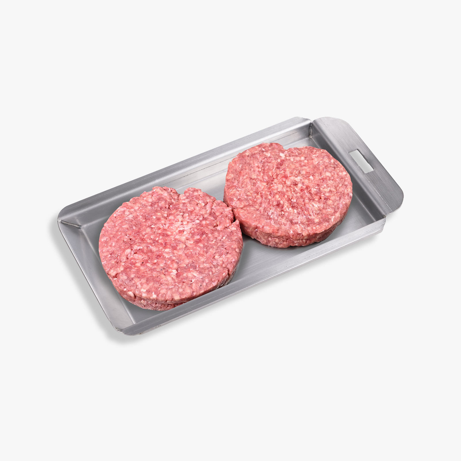 Fabriquée à la main en acier inoxydable de haute qualité, cette poêle pratique convient à tous les modèles Beefer de la série One (One, One Pro, One Chef, E-Beefer), ainsi qu’au Beefer Twin Pro avec séparateur. Son utilisation est particulièrement simple : il suffit d'utiliser la poignée de grille déjà incluse avec chaque Beefer. Grâce à son design spécial, tu peux facilement verser ou glisser les aliments hors de la poêle – parfait pour des plats particulièrement savoureux et juteux !