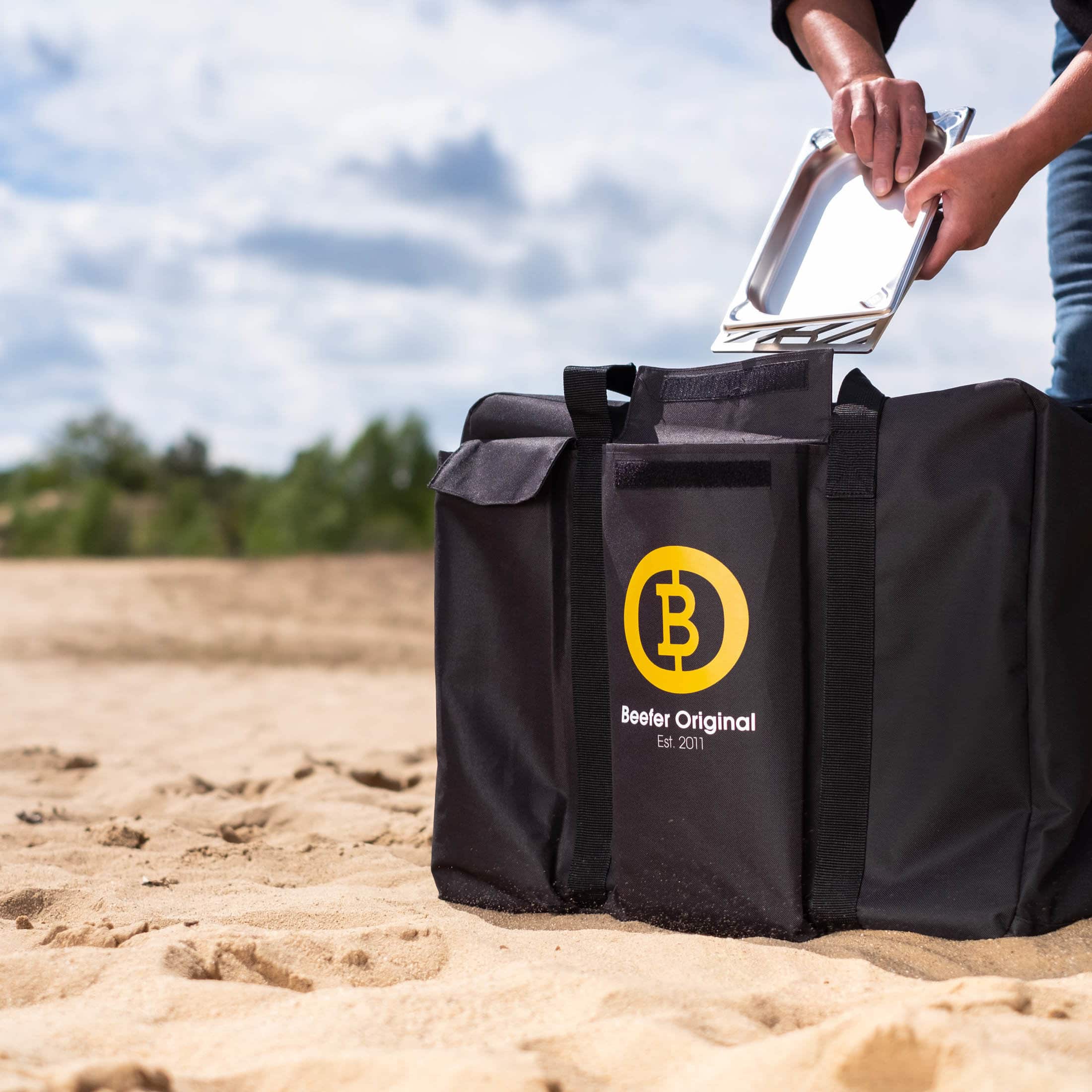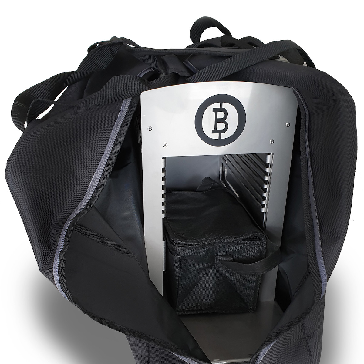 La livraison comprend un petit sac supplémentaire qui s'adapte exactement à l'avant du Beefer One ou Beefer One Pro. Ici, par exemple, le tuyau de gaz avec réducteur de pression et autres accessoires peuvent être rangés en toute sécurité - comme vous voulez - tout trouvera sa place dans ce sac ...